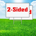 Our corrugated PVC yard signs are 24" wide by 18" tall,  UV printed with your design printed on one or both sides.  Metal ground stakes are included at no additional cost.